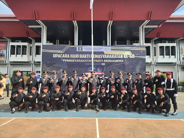 Kepala Lembaga Pemasyarakatan (Lapas) Kelas IIA Samarinda Kantor Wilayah Kementerian Hukum dan HAM (Kemenkumham) Kaltim Hudi Ismono mengikuti Upacara Hari Bakti Pemasyarakatan ke-60 gelaran Kanwil kaltim bertempat di halaman depan Kantor Wilayah, Jl MT Haryono, Samarinda, Sabtu (27/4/2024) pagi.